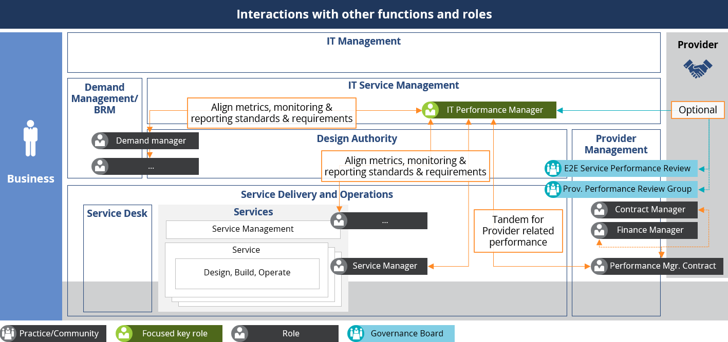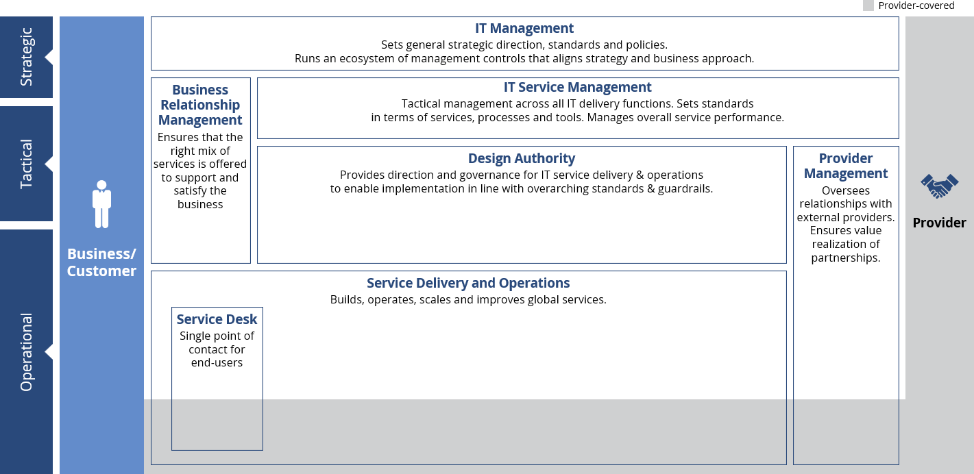 - Provider management, covering third parties in IT service provision