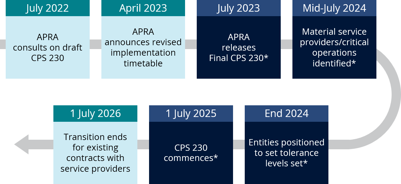 Originally scheduled to commence on January 1, 2024, concerns from the financial services industry regarding the time required to implement for affected organisations, the regulation has been delayed until July 2025. APRA’s CPS 230 will replace existing Prudential Standards which relate to outsourcing business activities to material service providers and will introduce significant changes to governance, compliance, contractual and incident response arrangements.